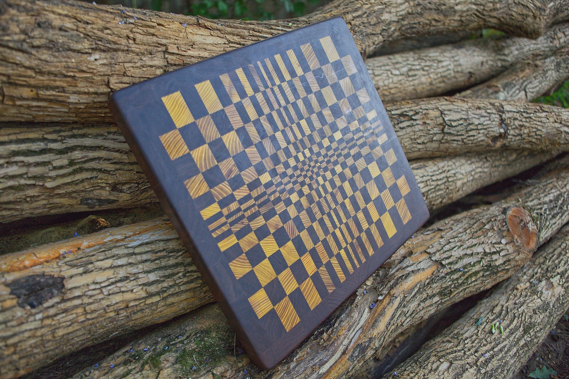 Discover "THE CENTERED", an exquisite woodwork masterpiece that merges tradition with modern artistry. This finely crafted block showcases a meticulous blend of vibrant Osage orange and rich Walnut, creating a captivating geometric dance. Every square resonates with precision and attention to detail, making it a statement piece for any setting. Enhance your space with a touch of elegance and craftsmanship that only THE CENTERED can offer. Ideal for those who appreciate the finer nuances of handcrafted art. Elevate your decor experience, center your aesthetic.